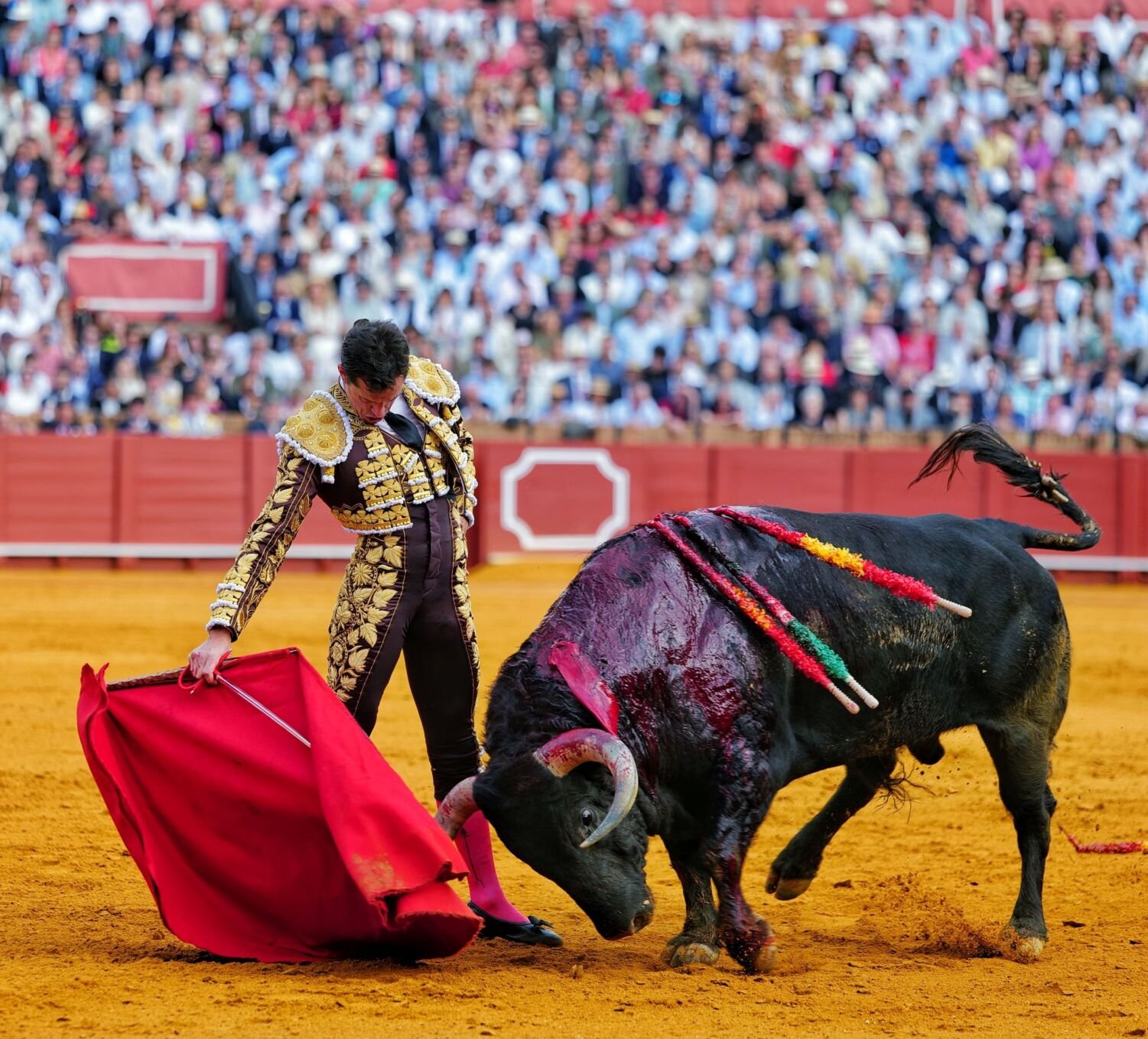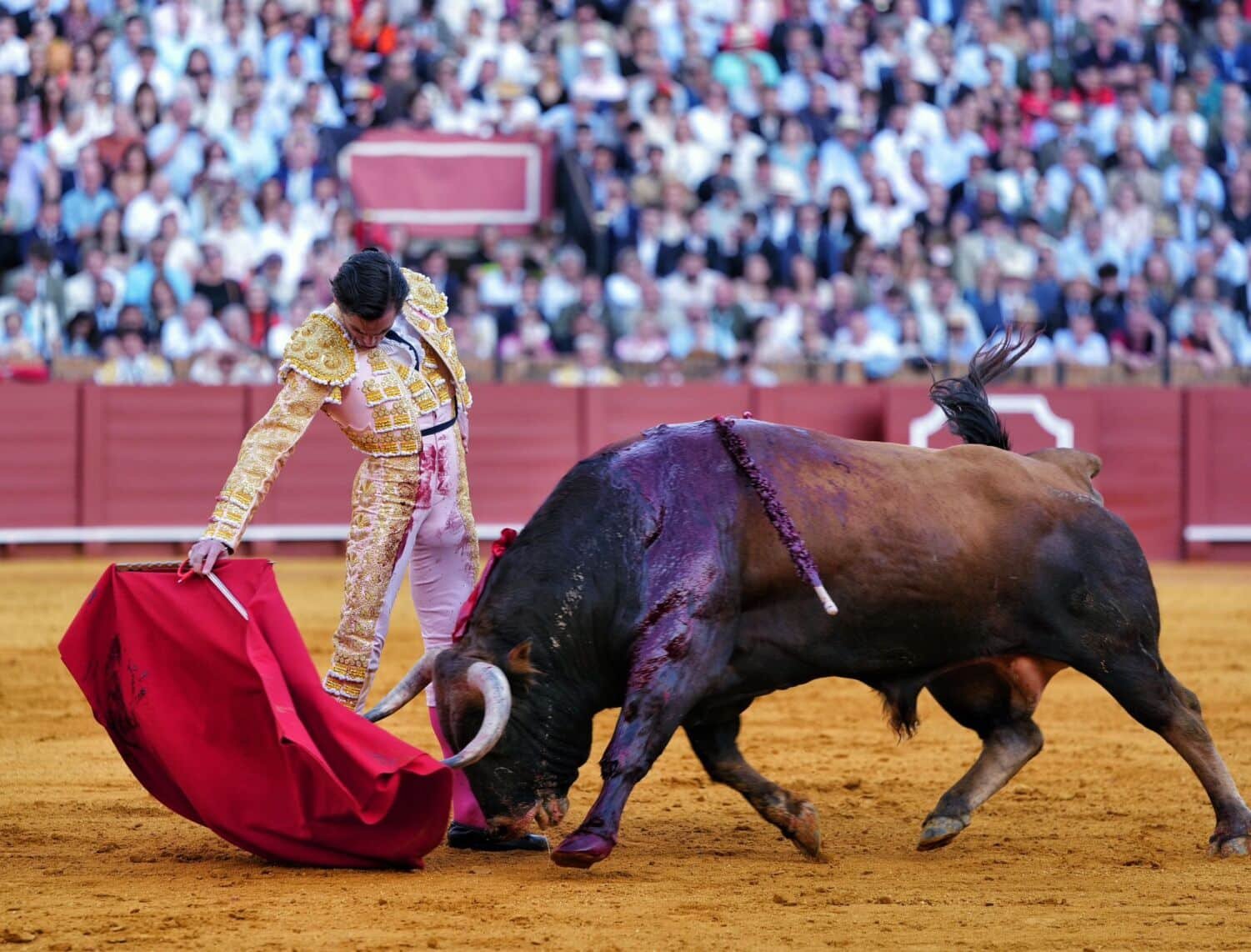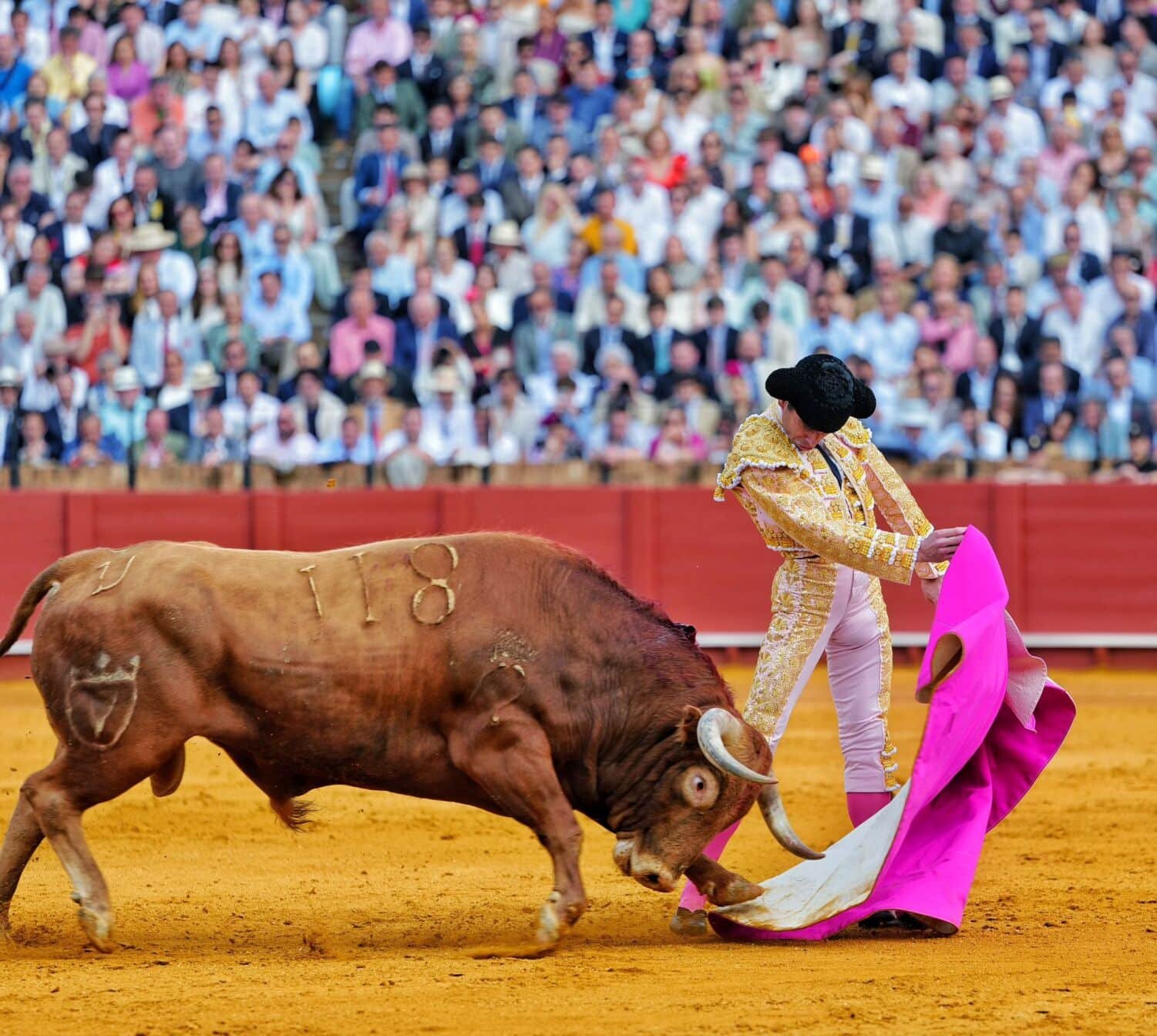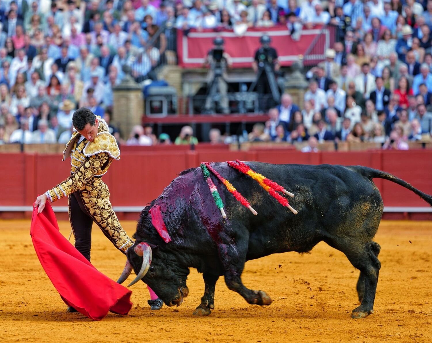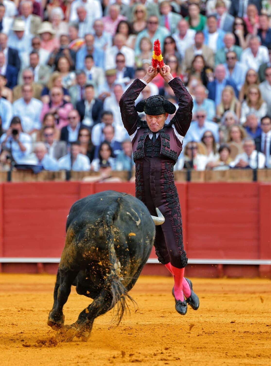 Otra tarde de lleno de “no hay billetes”, el 9° de ésta feria, una verdadera locura qué la feria taurina, haya “resucitado” tanta pasión, fidelidad, asistencia y seguimiento aún con las retransmisiones de Canal Sur y One Toro, estupendo balance económico para la empresa qué se estrena, con una climatología menos calurosa 23°; ante el encierro de Juan Pedro Domecq, trenzaron el paseíllo, DANIEL LUQUE.- (Azul ) Qué siempre tira palante, nunca se guarda algún ahorro para el hotel, el de Gerena asume digna, consciente y con mucha rresponsabilidad, su compromiso con Sevilla, de gran mérito, regular condición y gran maestría con serenidad y buen gusto, hoy precisamente ante el 4° “Botinero” dejó algunos pasajes bellos aprovechando las inercias, encendió el tendido con 3 naturales y dos derechazos ligados, después el animal se fué apagando y sacó cómo recurso las luquecinas, qué alegraron la concurrencia llegando a rematar con efectividad, cortando la única orejita del festejo ya que con el primero fue silenciado por las casi nulas fuerzas de su oponente. JUAN ORTEGA.- (Rosa pálido y oro) Con los diplomas y méritos del aroma y gusto de Sevilla, su principal activo el toreo suave, lento y parando el tiempo, con alma purísima y espíritu espléndido qué produce cuándo está entonado una intensidad con emoción romántica y profunda, tal vez uno de los únicos referentes, de Gitanillo de Triana o